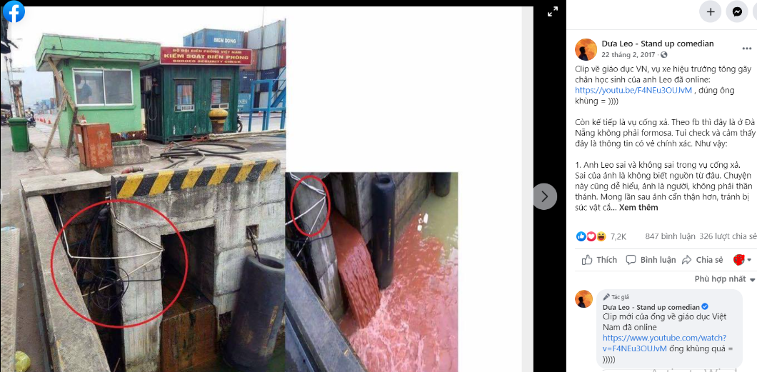 (2) Ngày 21-2-2017, Dưa Leo tung video clip “Formosa và truyền thông nước ta”. Trong đó, Dưa Leo đưa thông tin sai sự thật về biểu tình Formosa từ Facebook của Lê Nguyễn Hương Trà, hình ảnh “fake new” về cống xả thải. Sau khi bị chất vấn, ngày 22-2, anh ta xóa video và thừa nhận “đây có vẻ là thông tin không chính xác”.