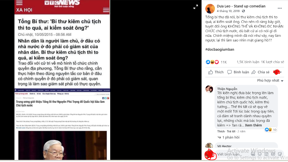 Ngày 4-10-2018, NPGH viết “Tổng bí thư đã nói, bí thư kiêm chủ tịch thì to quá, ai kiểm soát ông. Cho nên rõ ràng bây giờ, tuyệt đối ông KHÔNG THỂ VÀ KHÔNG ĐC NHẬN CHỨC chủ tịch nước, dù bất cứ ai có nói gì đi nữa. Chính miệng mình đã nói như vậy, nay làm ngược lại thì làm sao nhìn mặt giang hồ??” Trong khi đó, việc đồng chí Tổng Bí Thư Nguyễn Phú Trọng được Ban Chấp hành Trung ương Đảng bầu làm Chủ tịch nước là biện pháp tình thế khi Chủ tịch nước Trần Đại Quang đột ngột qua đời. Thực tế, đây không phải là hiện tượng cá biệt khi lãnh tụ Hồ Chí Minh và cố Tổng bí thư Trường Chinh từng đảm nhiệm song song hai vị trí trong những giai đoạn khó khăn của lịch sử, theo yêu cầu, tí nhiệm của Đảng và Nhà nước